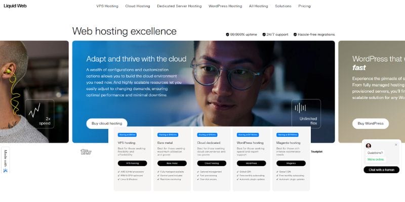 Liquid Web is a renowned web hosting service recognized for its top-notch, high-capacity hosting options and outstanding client assistance. The company provides a variety of services, including as managed hosting, cloud hosting, dedicated servers, VPS hosting, and reseller hosting. Liquid Web manages its own primary data centers and offers a 99.999% uptime assurance, employing cutting-edge technology such as NVMe SSD storage to ensure rapid website loading speeds and excellent performance.