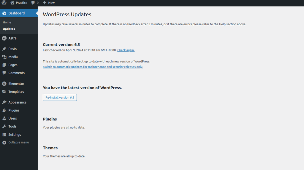 Step 3: Now you can check the current version of your WordPress(as you can see in the given figure).The latest version of this WordPress is “6.5”, yours might differ from this so don’t worry.
