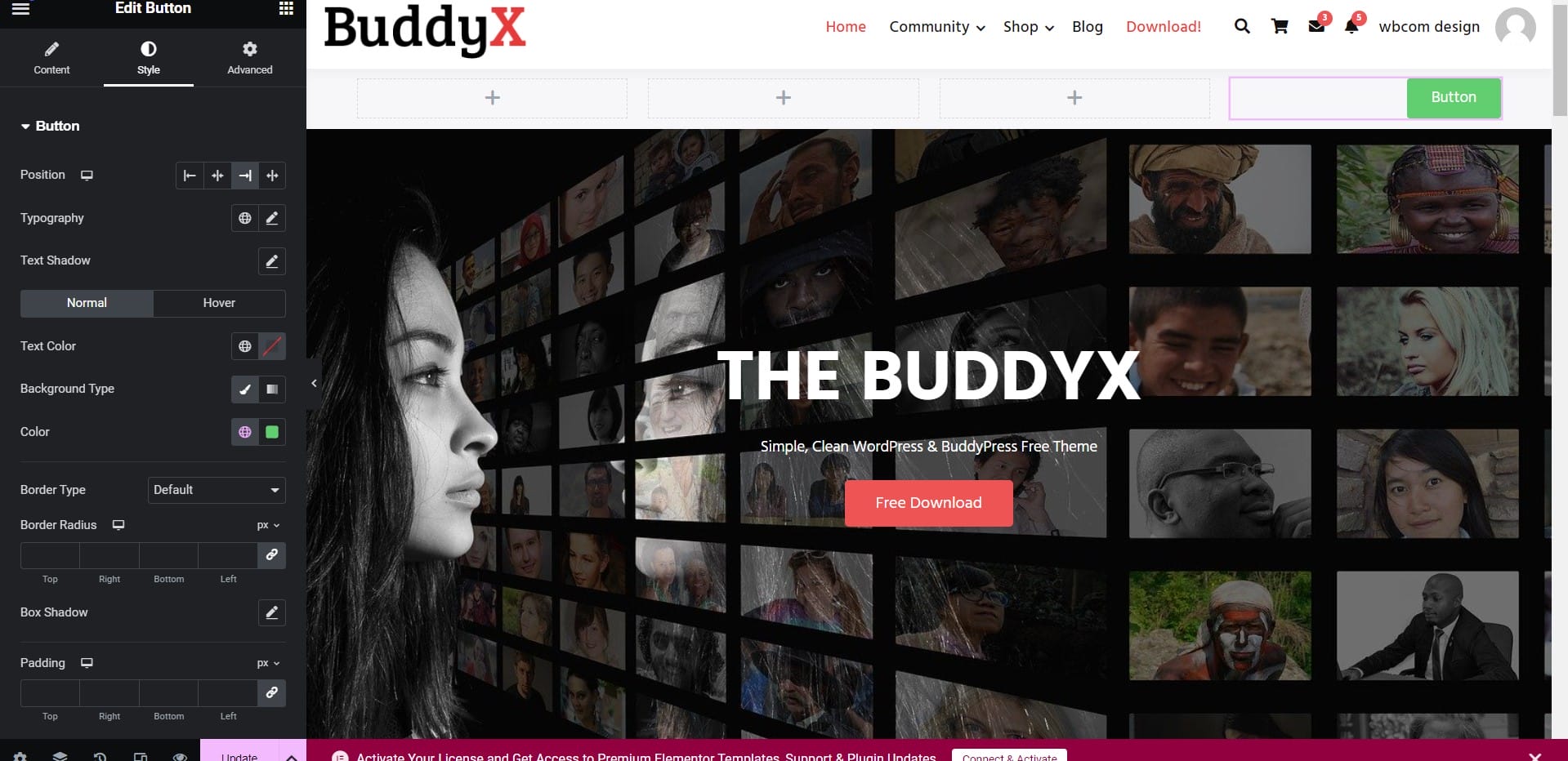 - For styling, go to the Style section, where you can adjust the button’s design elements, such as size, typography, text color, background, border, shadow, and padding.