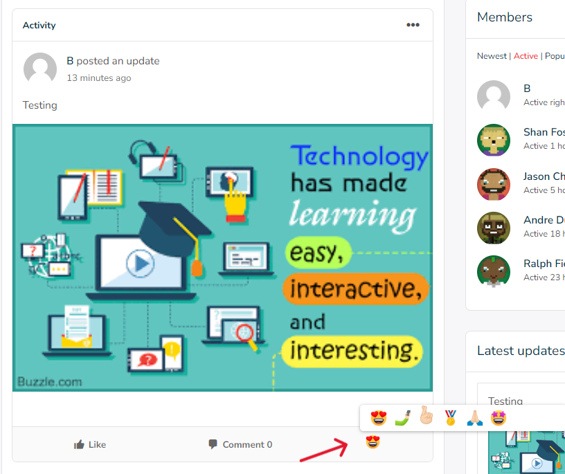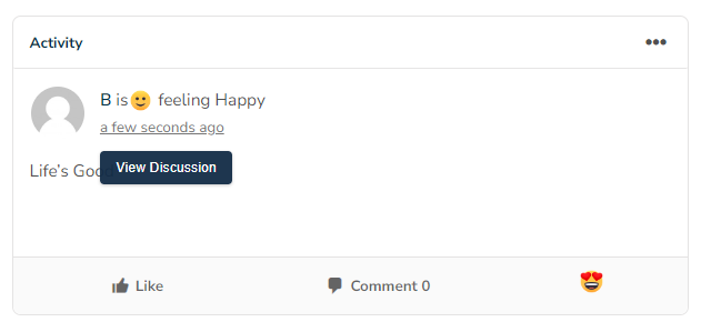 Users can easily give a reaction to every activity post by just clicking on the icon. You can see reaction icons on every post.