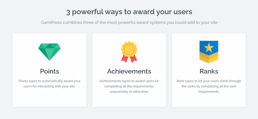 2. Highly customizable reward system: You can create multiple point types, achievements, and ranks tailored to your website’s needs.
