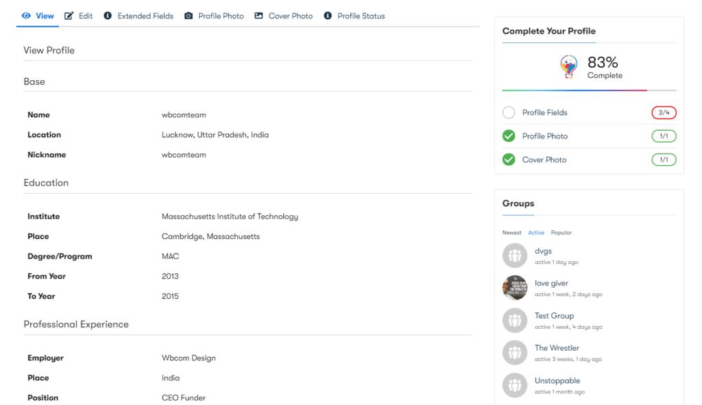 BuddyPress Profile Pro empowers you to extend BuddyPress profiles with customizable repeater fields and groups. Effortlessly add multiple field groups that display on members’ profiles, including repeater groups for categories like Education, Work History, and more.