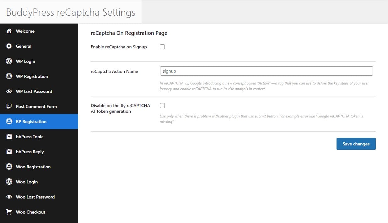 - Add reCaptcha to the BuddyPress registration form for enhanced security against bots.