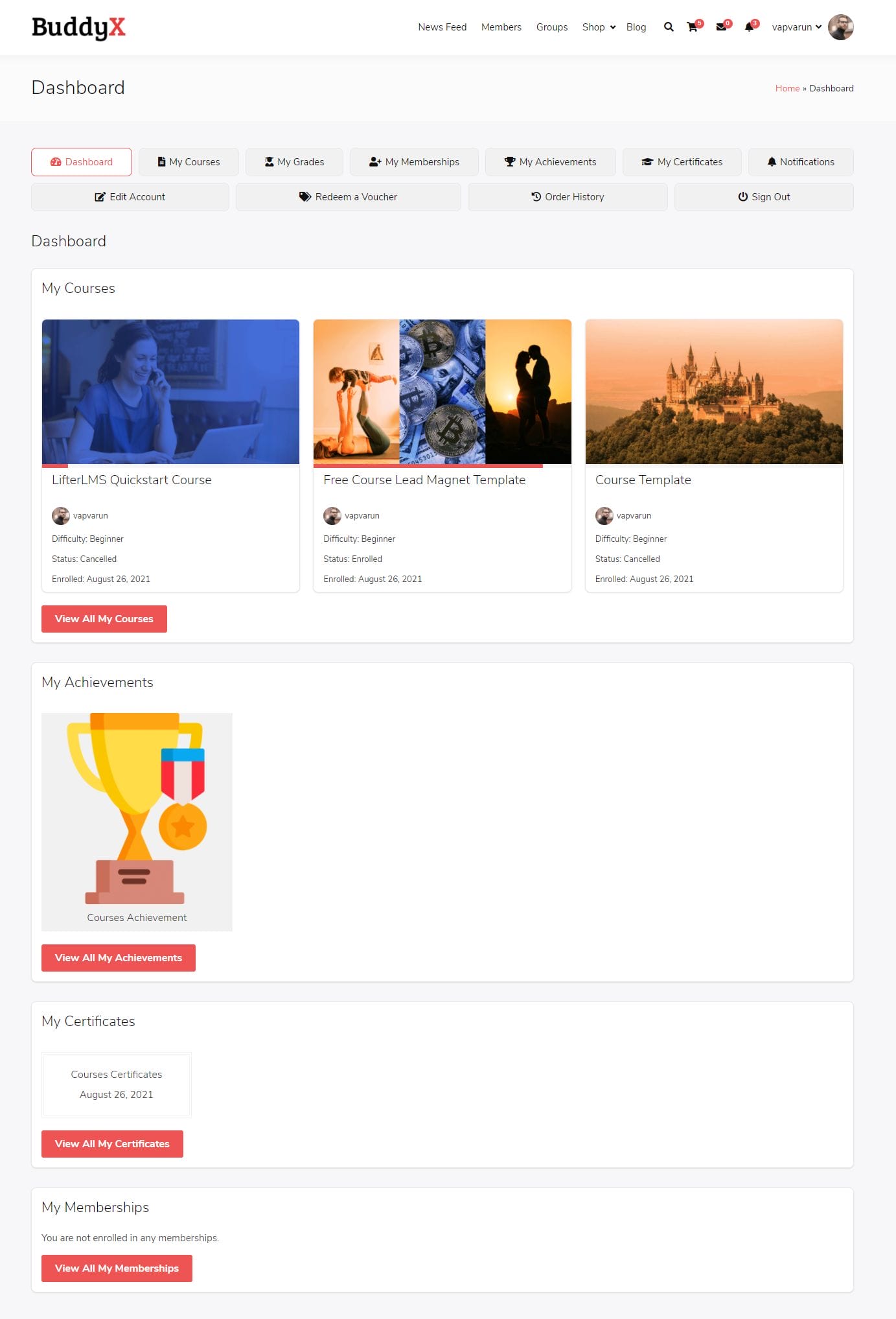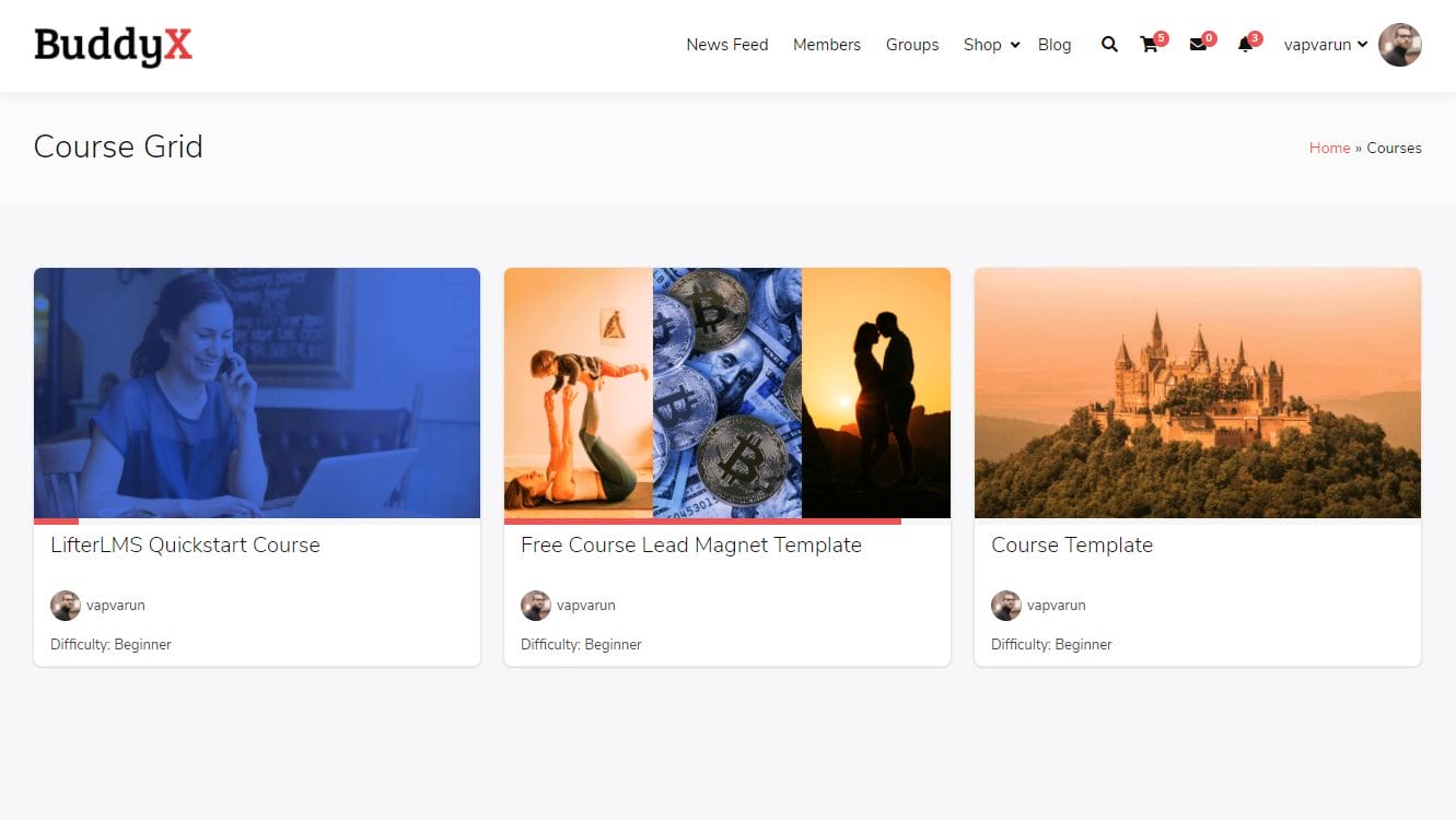 You can integrate the LifterLMS plugin with the BuddyX or Pro Theme to create a full-fledged online courses website. We at BuddyX put in a ton of work to make LifterLMS look and work beautifully with the BuddyX or Pro Theme.