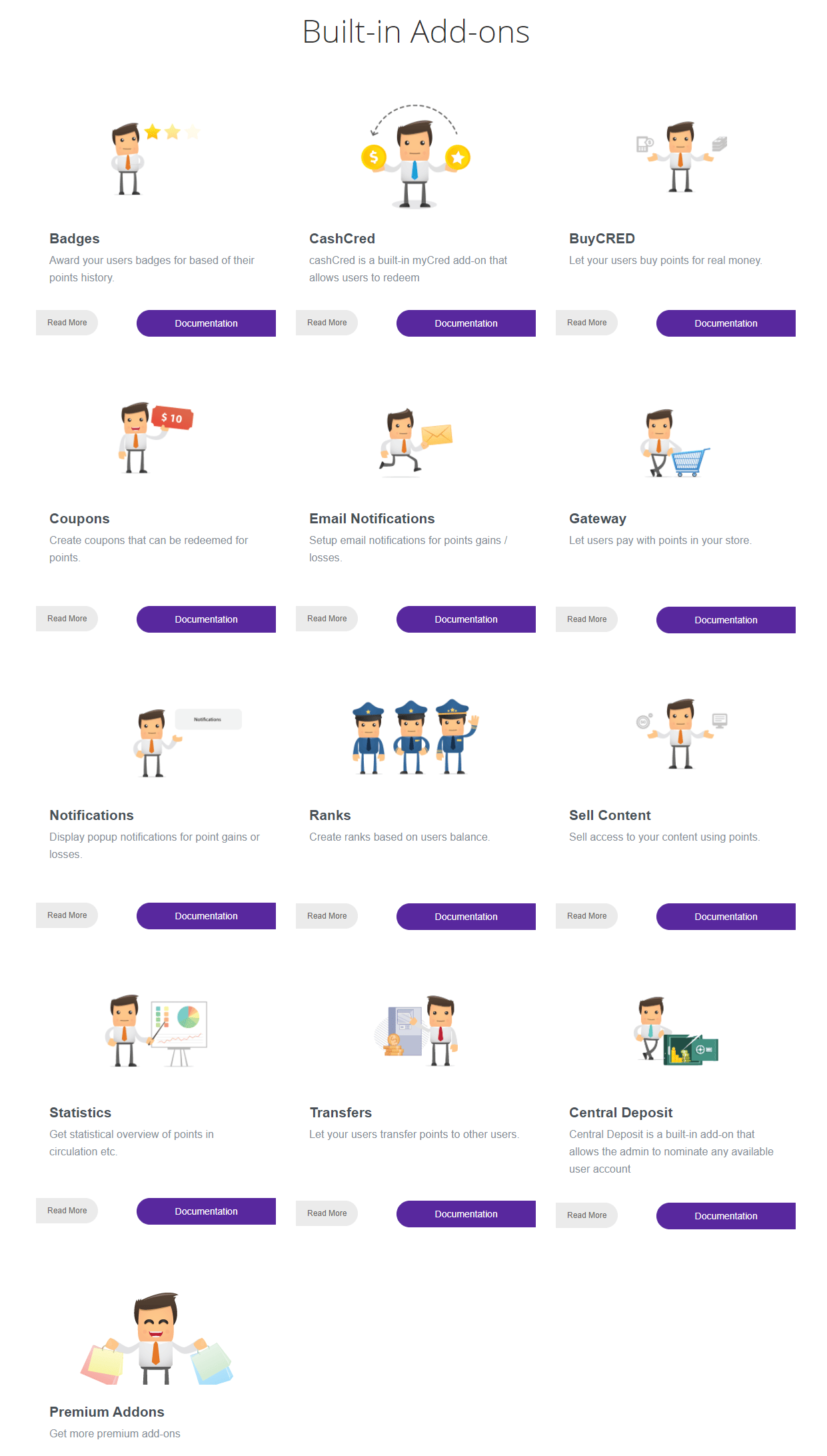 Supported myCRED Add-Ons: