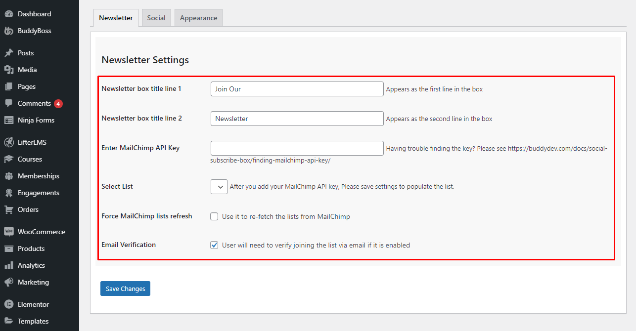 Social Subscribe Box is a fun-filled way to let your users subscribe to your Mailchimp newsletter on your WordPress site. It also supports linking to your social media profiles(for Facebook, Twitter, Google+ & LinkedIn).