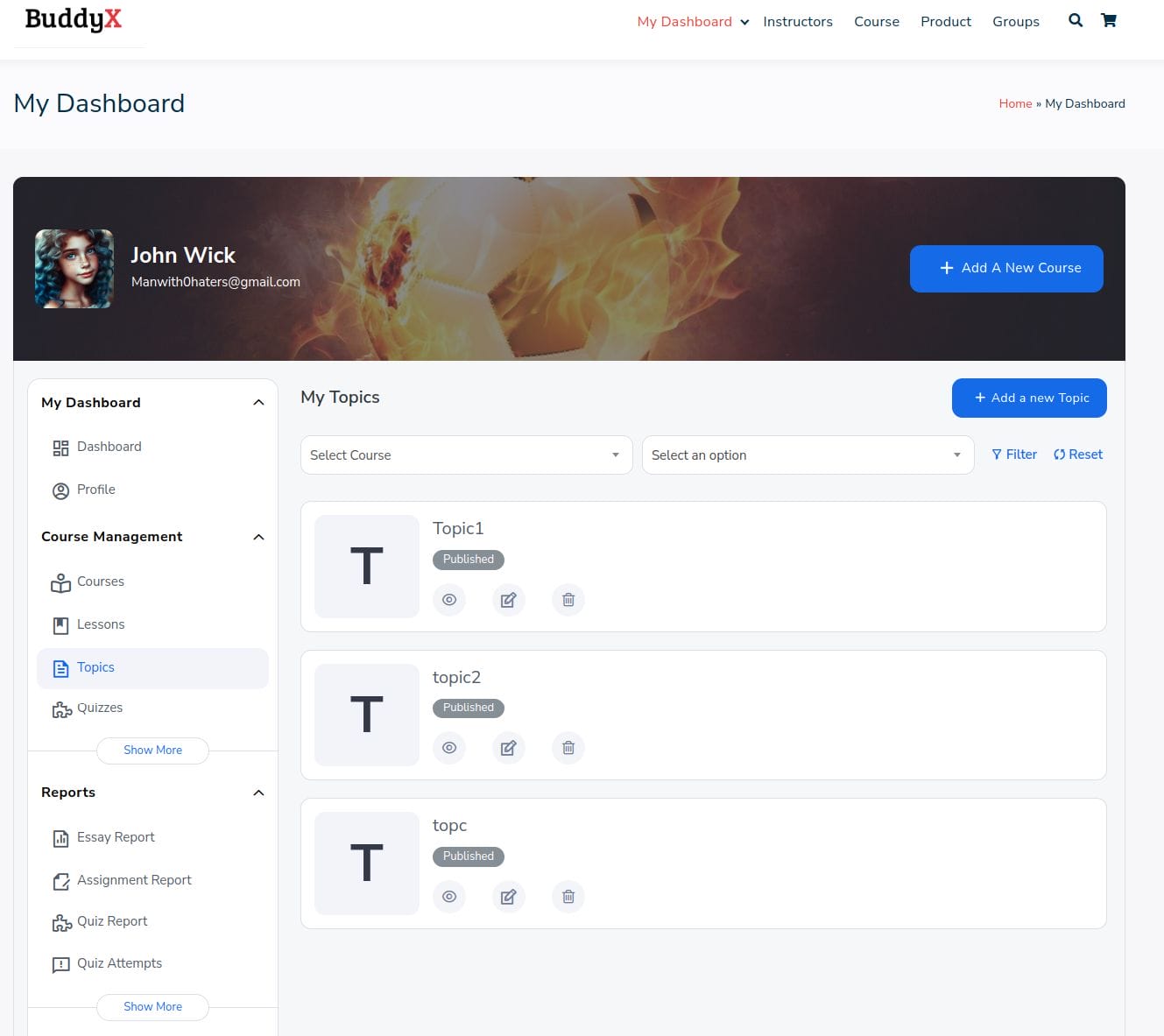 Within this section, you have the freedom to edit, delete, and create topics. These topics can then be associated with specific lessons, allowing for structured organization and seamless navigation of course content.
