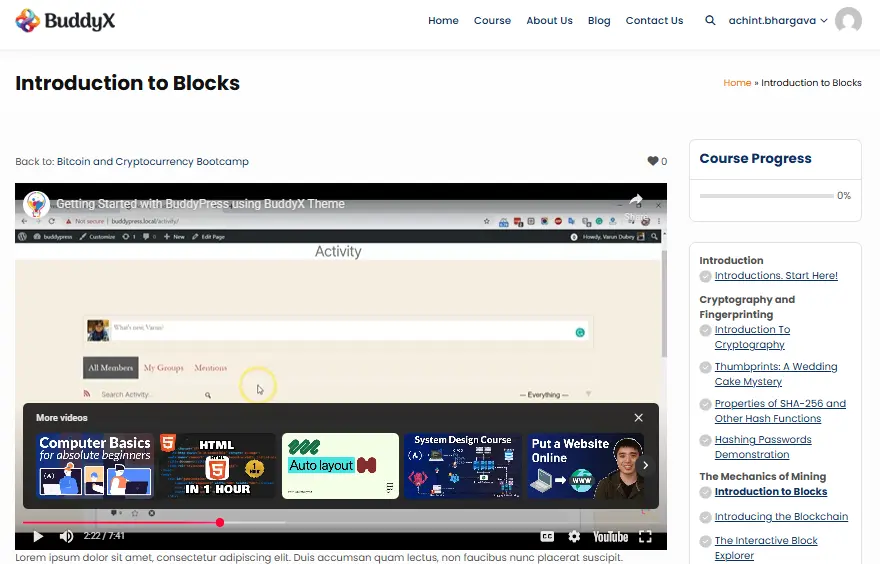 LifterLMS: LifterLMS integrates well with BuddyX Pro’s design system, offering neat layouts for courses, membership pages, and student dashboards. The theme enhances LifterLMS’s structured learning format with better spacing, improved typography, and visually organized content blocks.
