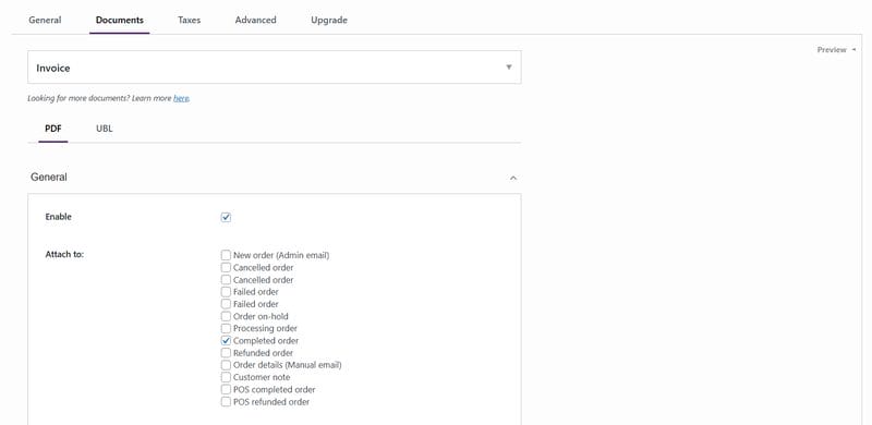 5. Once activated, you’ll find new settings under WooCommerce → PDF Invoices.