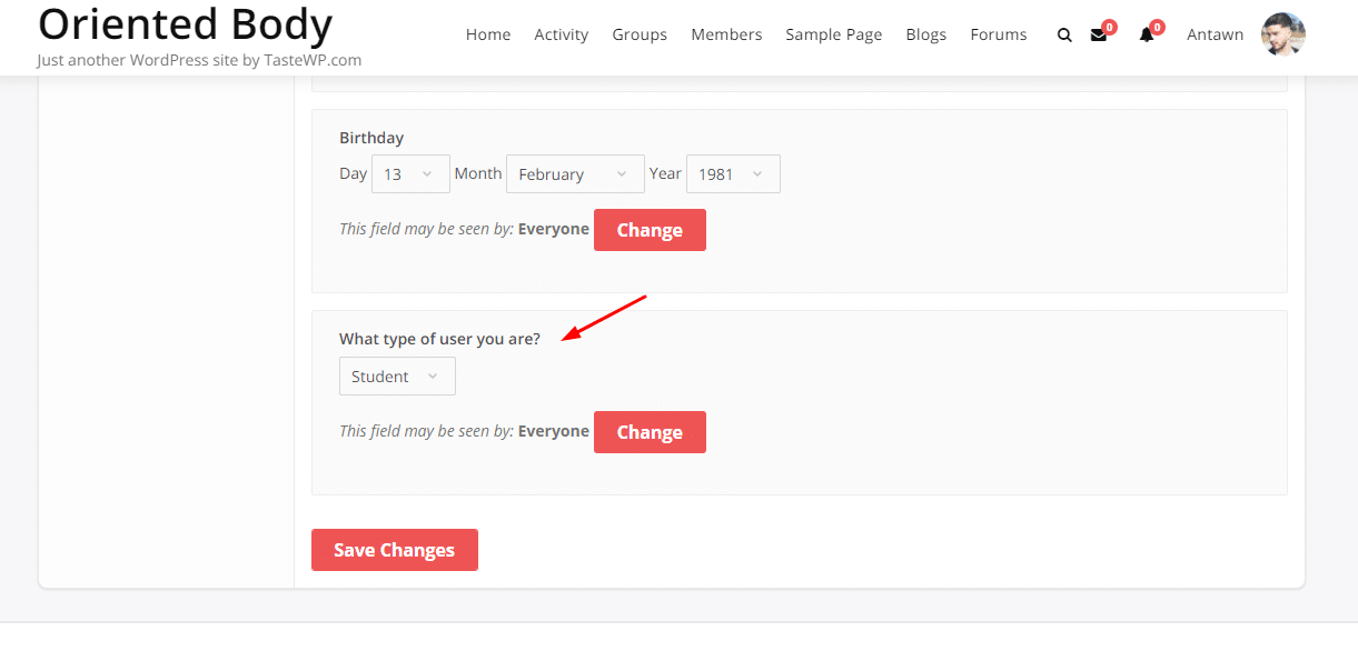 - Works with Non-Editable Profile field plugin if you don’t want to allow users to modify their member type after registration.