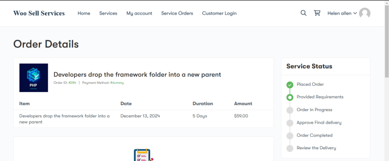 - The customer places an order for a service through the WooCommerce store.