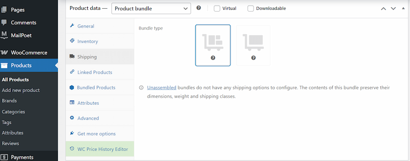 Once activated, you’ll be able to access bundle creation options directly from your WooCommerce product settings.