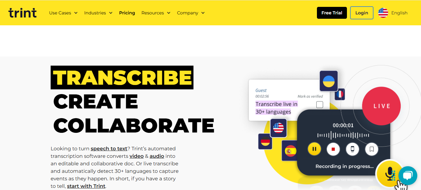 Happy Scribe supports over 120 languages, making it a top pick for global companies and multilingual media projects. It provides both AI and human transcription services.