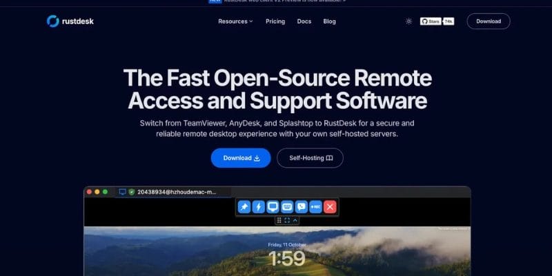 RustDesk is a free, open-source remote desktop tool often called the “open-source TeamViewer.” It can be self-hosted for full data control, uses peer-to-peer connections by default, provides end-to-end encryption, and supports multiple platforms, including Windows, macOS, Linux, Android, and iOS.