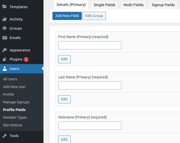 3. Customizing Registration Form: BuddyPress allows you to customize the registration form to suit your needs. Navigate to Users > Profile Fields in your WordPress dashboard. Here, you can add new fields to your registration form. For example, you could add a field for users to enter their bio or upload a profile picture.