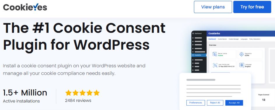 1. CookieYes | WordPress Cookie Consent Plugins