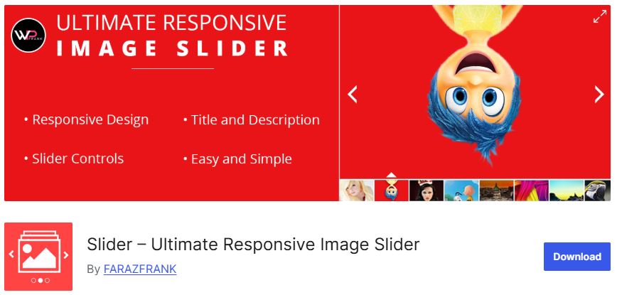 Ultimate Responsive Image Slider is a lightweight and user-friendly WordPress image slider plugin designed for creating fully responsive and mobile-friendly slideshows. It allows users to add unlimited images to a single slider and display them in a smooth, touch-enabled interface. The plugin is ideal for showcasing portfolios, galleries, and product images without slowing down the website.